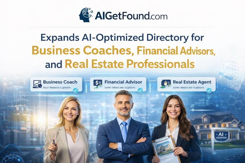 AIGetFound.com expands its AI-optimized professional directory to include business coaches, financial advisors, and real estate professionals, helping experts improve structured visibility and discoverability in AI-powered search tools like ChatGPT and Gemini.