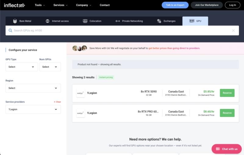 1Legion joins Inflect's digital infrastructure marketplace, enabling AI and media teams to deploy dedicated bare-metal GPU servers powered by NVIDIA RTX 5090 and RTX Pro 6000 Blackwell for high-performance workloads.