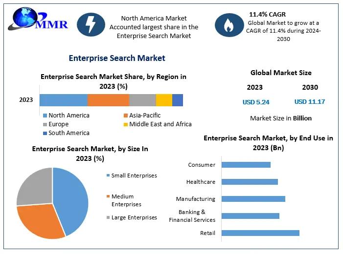 Anticipated Growth in Revenue:Enterprise Search Market was US$ 5.24 Bn in 2023 and is expected to grow at CAGR 11.4% in forecast period. The rising need to proficiently supervise large volumes of data in an organization to develop the operational efficiency boost the market growth and expected to reach US$ 11.17 Bn by 2030.