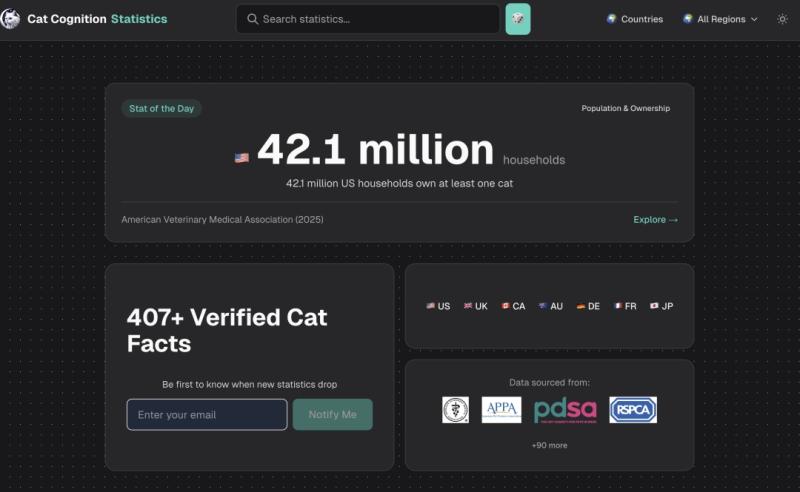 New free resource provides verified answers to the most-searched cat questions-from "how many cats in the US" to adoption rates and wildlife impact-with one-click citations from 200+ peer-reviewed sources.