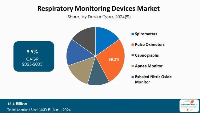 The global respiratory monitoring devices market is experiencing strong growth as the prevalence of respiratory disorders continues to rise worldwide. Valued at US$ 15.4 billion in 2024, the global industry is projected to grow at a compound annual growth rate (CAGR) of 9.9% from 2025 to 2035, reaching approximately US$ 43.3 billion by the end of 2035.