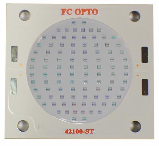 August 18th, 2016 – Fremont, CA - Flip Chip Opto releases its first-in-class ‘Ares Series’ UV-A spectrum flip chip COB, as part of the company’s standard product line up. The Ares Series features two variations of the UV-A spectrum; 375nm and 395nm, with power options of 100 watts and 200 watts. The Ares Series is structured based on patented DBR LED Flip Chips and features a unique proprietary low temperature bonding technology which boosts lighting efficiency and decreases thermal resistance between the LED chip junction and the module’s metal substrate.The Ares Series features a 100 watt and 200 watt COB module that offers two unique variations of the UV illumination spectrums at peak wavelengths of 375±5nm and 395±5nm. The Ares 100A consumes a maximum power of 185 watts for a peak of 375nm and 167 watts for a peak of 395nm and features a thermal resistance of 0.18°C/W. The Ares 200A consumes a maximum power of 360 watts for a peak of 375nm and 327 watts for a peak of 395nm with a thermal resistance of 0.12°C/W. Both the 100 watt and 200 watt modules features a dimension of 42mm x 42mm x 3mm with a difference on the light emitting surface of 30mm and 32mm, respectively.