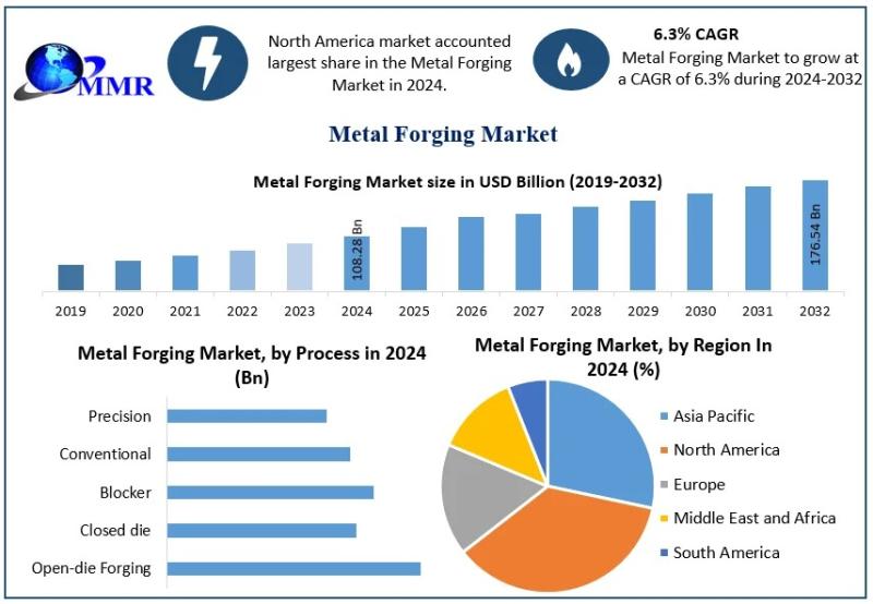 Metal Forging Market was valued at USD 108.28 Bn in 2024 and is expected to reach USD 176.54 Bn by 2032 at a CAGR of 6.3% over the forecast period 2025-2032. Metal Forging Market Set for Strong Expansion Amid Industrial Modernization and Lightweight Manufacturing Demand
