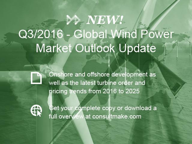 MAKE’s Q3/2016 Global Wind Power Market Outlook Update presents an analysis of global and regional wind power installation forecasts through 2025.Policy clarity in several key global markets since June has impacted growth projections both positively and negatively in those markets, but the adjustments balance out over the 10-year outlook, with a net upgrade of less than 600MW.