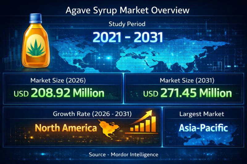 The Agave Syrup Market continues to gain attention as consumers and food manufacturers reassess their sweetener choices. According to Mordor Intelligence, the global agave syrup market size [https://www.mordorintelligence.com/industry-reports/agave-syrup-market?utm_source=abnewswire] is valued at USD 208.92 million in 2026 and is projected to reach USD…