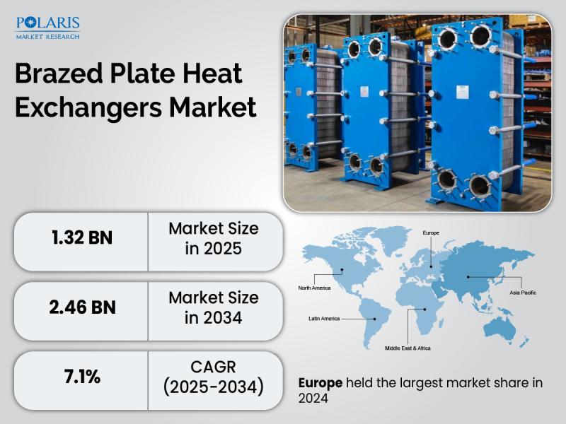 Brazed Plate Heat Exchangers Market is currently valued at USD 1.23 billion in 2024 and is anticipated to generate an estimated revenue of USD 2.46 billion by 2034, according to the latest study by Polaris Market Research. Besides, the report notes that the market exhibits a robust 7.1% Compound Annual Growth Rate (CAGR) over the forecasted timeframe, 2025 - 2034