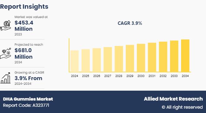 Allied Market Research published a report, titled, "DHA Gum-mies Market by Source (Fish Oil, Algal Oil and Others), by Flavor (Fruit flavors and Others), End User (Kids, Adults and Pregnant Women): Global Opportunity Analysis and Industry Forecast, 2024-2034". According to the report, the DHA gum-mies market was valued at $453.4 million in 2023, and is estimated to reach $681.0 million by 2034, growing at a CAGR of 3.9% from 2024…