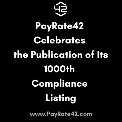 PayRate42 Celebrates the Publication of Its 1000th Compliance Listing