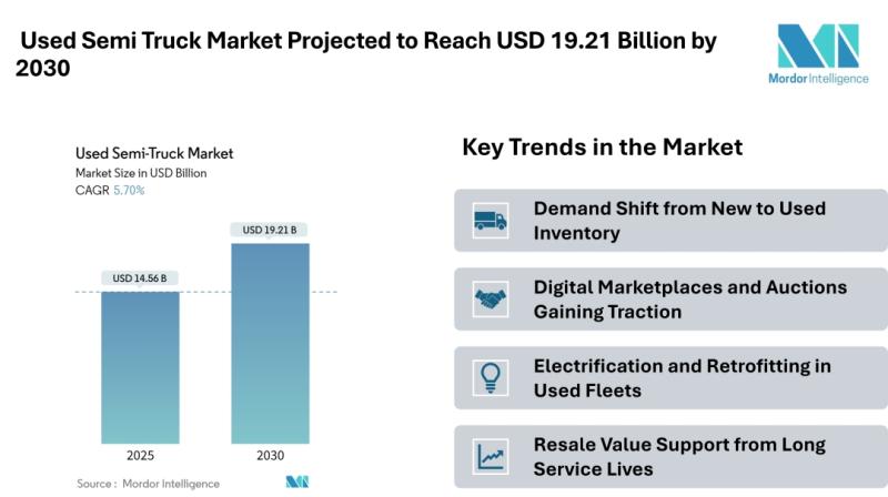 Mordor Intelligence has published a new report on used semi truck market offering a comprehensive analysis of trends, growth drivers, and future projections.