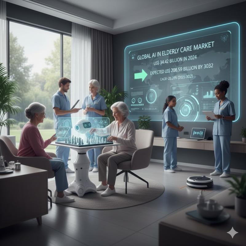 Global AI in Elderly Care Market reached US$ 34.42 billion in 2024 and is expected to reach US$ 208.59 billion by 2032, growing with a CAGR of 25.26% during the forecast period 2025-2032.