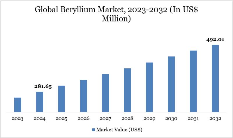 Beryllium Market reached US$ 281.65 million in 2024 and is expected to reach US$ 492.01 million by 2032, growing with a CAGR of 7.22% during the forecast period 2025-2032.