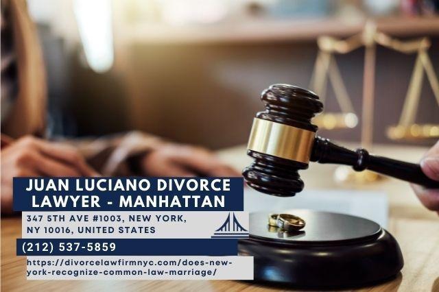 New York, NY - New York family law attorney Juan Luciano of Juan Luciano Divorce Lawyer (https://divorcelawfirmnyc.com/does-new-york-recognize-common-law-marriage/) issues practical guidance on New York's treatment of common-law marriage and the legal tools available to protect unmarried partners. Drawing on current New York law and procedure, the update explains that New York abolished common-law marriage in 1933 and that cohabiting partners do not receive automatic marital rights, while also outlining viable alternatives…