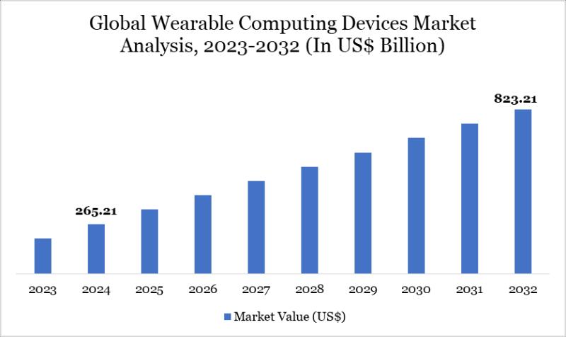 The Global Wearable Computing Devices Market reached US$265.21 billion in 2024 and is expected to reach US$823.21 billion by 2032, growing at a CAGR of 15.21% during the forecast period 2025-2032.