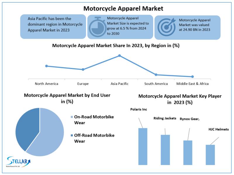 Global Motorcycle Apparel Market to Expand from USD 24.90 Billion in 2023 to Nearly USD 38.69 Billion by 2030, Growing at a 6.5% CAGR, as per Stellar Market Research