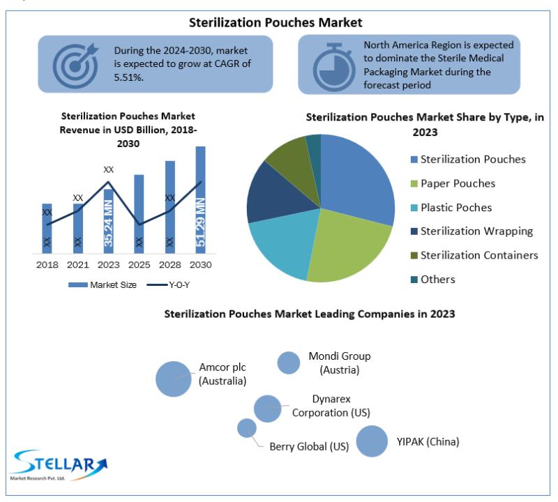Global Sterilization Pouches Market Valued at USD 35.24 Million in 2023, Projected to Grow at a 5.51% CAGR Through Forecast Period, as per Stellar Market Research