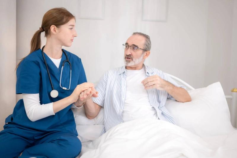 Opulife Home Care Highlights Leading Post-Surgical Support in North York, showing a dedicated nurse providing attentive bedside care to a recovering patient, reinforcing safe recovery, comfort, and clinical oversight at home.