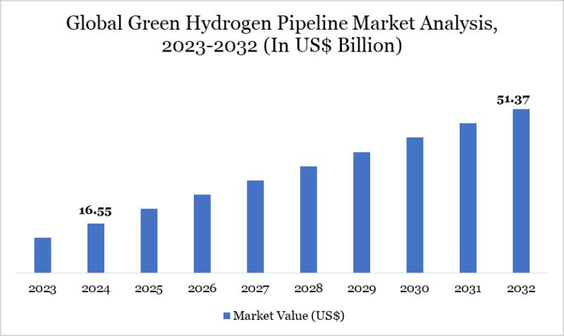 The Global Green Hydrogen Pipeline Market size reached US$ 16.55 billion in 2024 and is expected to reach US$ 51.37 billion by 2032, growing at a CAGR of 15.21% during the forecast period 2025-2032. Green hydrogen pipelines are becoming a cornerstone of clean energy infrastructure, enabling the movement of hydrogen from production regions to industrial hubs.