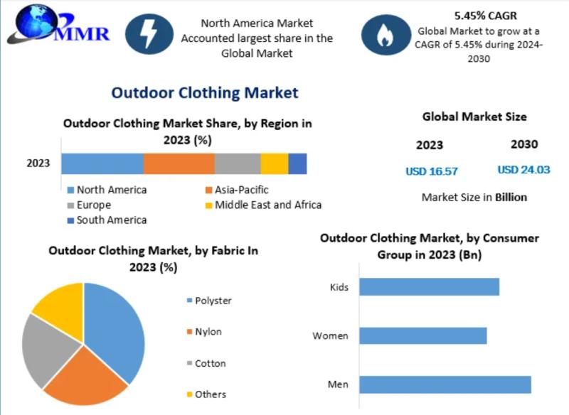 The outdoor clothing market, valued at USD 16.57 billion in 2023, is poised for significant growth, projected to reach nearly USD 24.03 billion by 2030, with a CAGR of 5.45%. This expansion is driven by the increasing popularity of outdoor activities such as hiking, camping, and sports, coupled with a global shift towards healthier lifestyles. As consumers prioritize durability, comfort, and performance in their apparel, the demand for specialized outdoor clothing continues to rise, making it a dynamic and competitive industry.