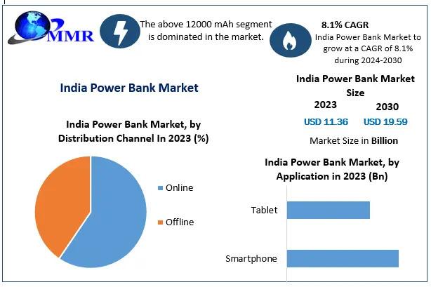Forecast Increase in Revenue:India Power Bank Market was worth USD 11.36 Bn in 2023 and overall revenue is anticipated to rise at a rate of 8.1% from 2024 to 2030, reaching almost USD 19.59 Bn in 2030.