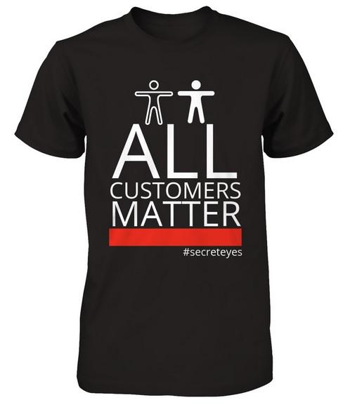 The day long campaign will bring global awareness to the growing issue of unethical company practices and poor customer service. To show their support, participants are asked to purchase a shirt, wear it on Black Friday (while shopping or out), and photograph themselves while wearing it out using #AllCustomersMatter on all social media platforms. A portion of all proceeds generated will go towards customer service improvement initiatives for small businesses.
