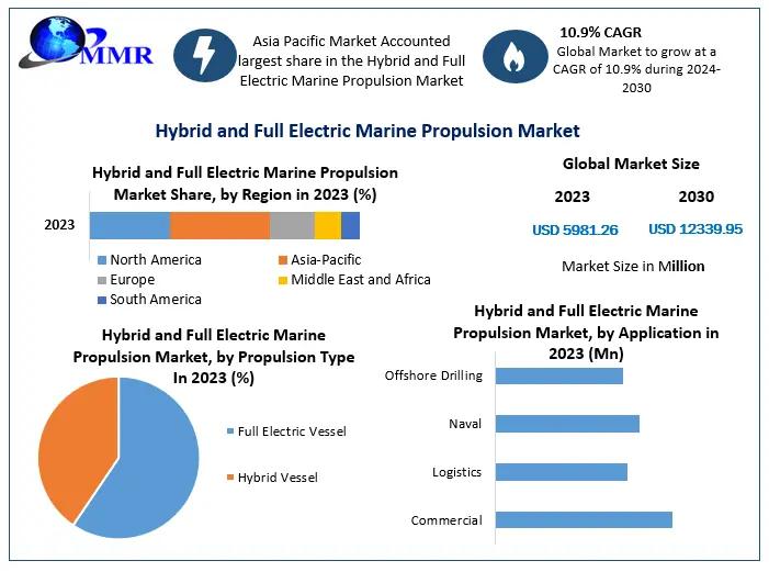 Hybrid and Full Electric Marine Propulsion Market is expected to reach US$ 12339.95 Mn. by 2030 with a CAGR of 10.9%, during the forecast period.Hybrid and Full Electric Marine Propulsion Market Dynamics