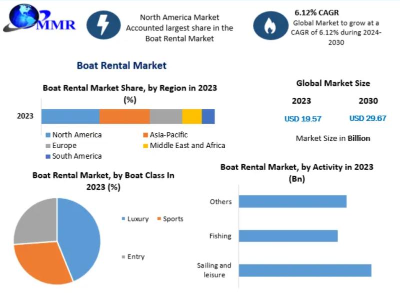 The global boat rental market, valued at USD 19.57 billion in 2023, is poised for significant growth, with projections indicating it will reach USD 29.67 billion by 2030, driven by a 6.12% CAGR. This expansion is fueled by rising interest in marine tourism, increased accessibility to rental services, and the appeal of luxury travel packages, making boat rental a preferred choice for recreational and adventure activities worldwide.