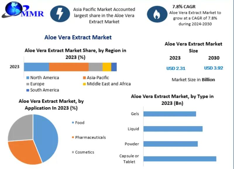 You can edit or delete your press release Aloe Vera Extract Market was valued at 2.31 Bn. in 2023. Global Aloe Vera Extract Market size is expected to reach 3.92 Bn. at a CAGR of 7.8 percentage here