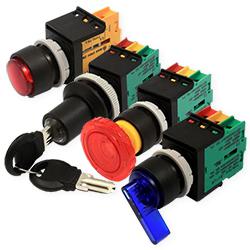 Designed to improve work efficiency, every switch in the series offers detachable contact blocks for easy installation and removal. They come in a variety of colors in both illuminated and non-illuminated and all come with 22mm, 25mm or 30mm mounting holes and are available in round or square (square only in 22mm and 25mm). Most switches are available in red, yellow, blue, green, white, black and orange; the emergency switches are exclusively green and red.