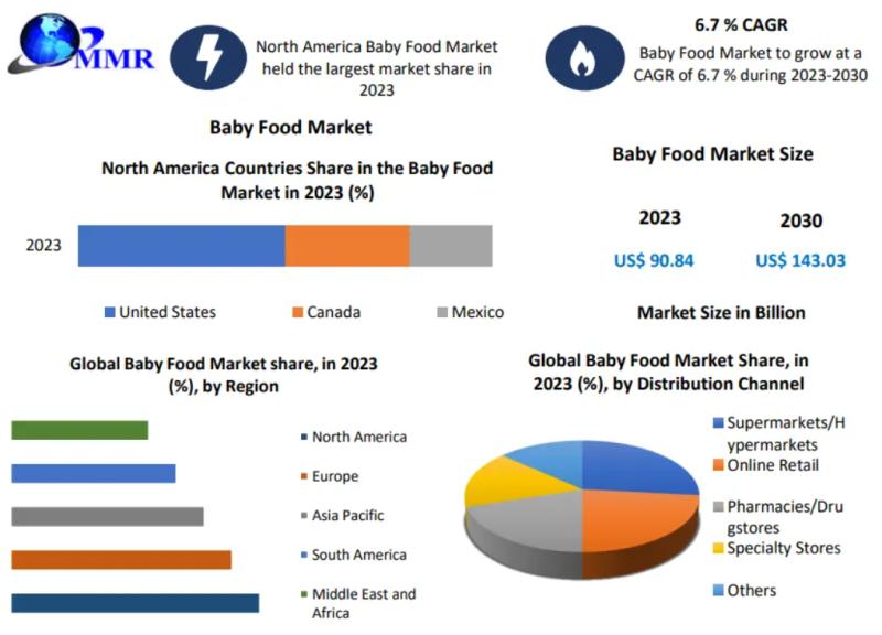 You can edit or delete your press release Global Baby Food Market size was valued at USD 90.84 Bn in 2023 and is expected to reach USD 143.03 Bn by 2030 here