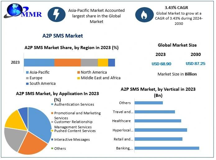 A2P SMS Market to Grow from USD 68.90 Billion in 2023 to USD 87.25 Billion by 2030, with a 3.43 Percentage CAGR