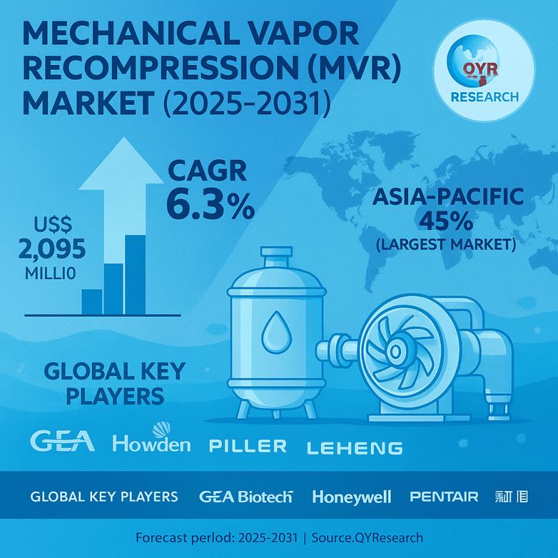 Los Angeles, United States - QY Research has unveiled its latest study titled "Global Mechanical Vapor Recompression (MVR) Market Share and Ranking, Overall Sales and Demand Forecast 2025-2031." This newly released report delivers a comprehensive overview of the global Mechanical Vapor Recompression (MVR) market, analyzing the forces shaping its growth trajectory and providing valuable insights for stakeholders, investors, and industry professionals. the research covers key areas including market dynamics, segmentation,…