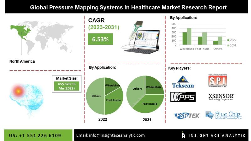 "Pressure Mapping Systems in Healthcare Market" in terms of revenue was estimated to be worth $552.23 Mn in 2023 and is poised to reach $924.18 Mn by 2031, growing at a CAGR of 6.90% from 2024 to 2031 according to a new report by InsightAce Analytic."Pressure Mapping Systems in Healthcare Market" in terms of revenue was estimated to be worth $552.23 Mn in 2023 and is poised to reach $924.18 Mn by 2031, growing at a CAGR of 6.90% from 2024 to 2031 according to a new report by InsightAce Analytic.