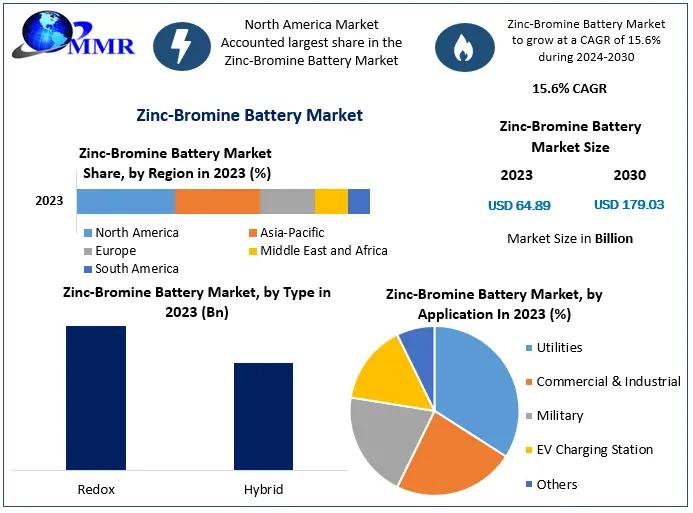 Zinc-Bromine Battery Market OverviewZinc-Bromine Battery Market is expected to reach USD 179.03 Bn by 2030 from USD 64.89 Bn in 2023, at a CAGR of 15.6% during the forecast period. The report analyzed by Maximize Market Research, on the Zinc-Bromine Battery Market, covers an extensive regional analysis and competitive landscape.