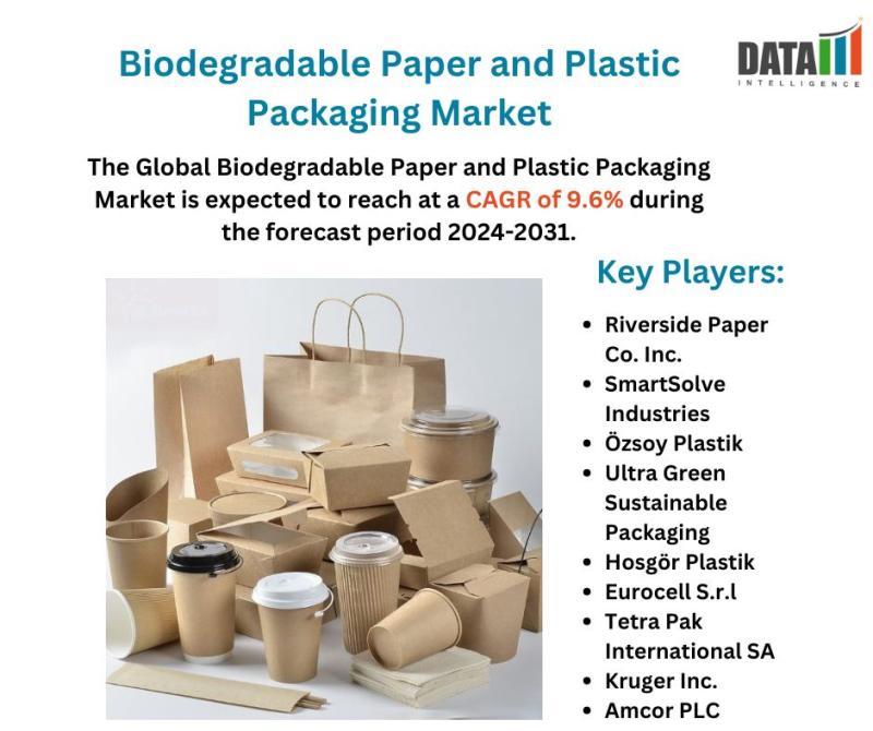 The Global Biodegradable Paper and Plastic Packaging Market reached US$ 14.5 billion in 2023 and is expected to reach US$ 23.4 billion by 2031, growing with a CAGR of 9.6% during the forecast period 2024-2031.The biodegradable paper and plastic packaging market focuses on the production and use of packaging materials that can naturally break down in the environment without leaving harmful residues. These materials, made from renewable sources like plant-based plastics or sustainably sourced paper, offer an eco-friendly alternative to traditional packaging, which contributes to pollution and landfill waste.