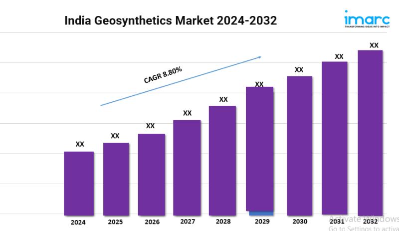 The India geosynthetics market is rapidly growing, fueled by increasing infrastructure projects and a focus on sustainable solutions for environmental challenges. According to the latest report by IMARC Group, the India geosynthetics market size is projected to exhibit a growth rate (CAGR) of 8.80% during 2024-2032.