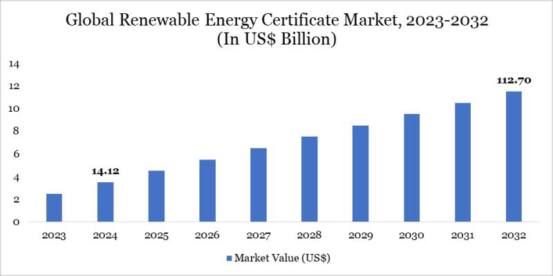 The Renewable Energy Certificate Market reached US$ 14.12 billion in 2024 and is expected to reach US$ 112.70 billion by 2032, growing at a strong CAGR of 26.32% during the forecast period 2025-2032.