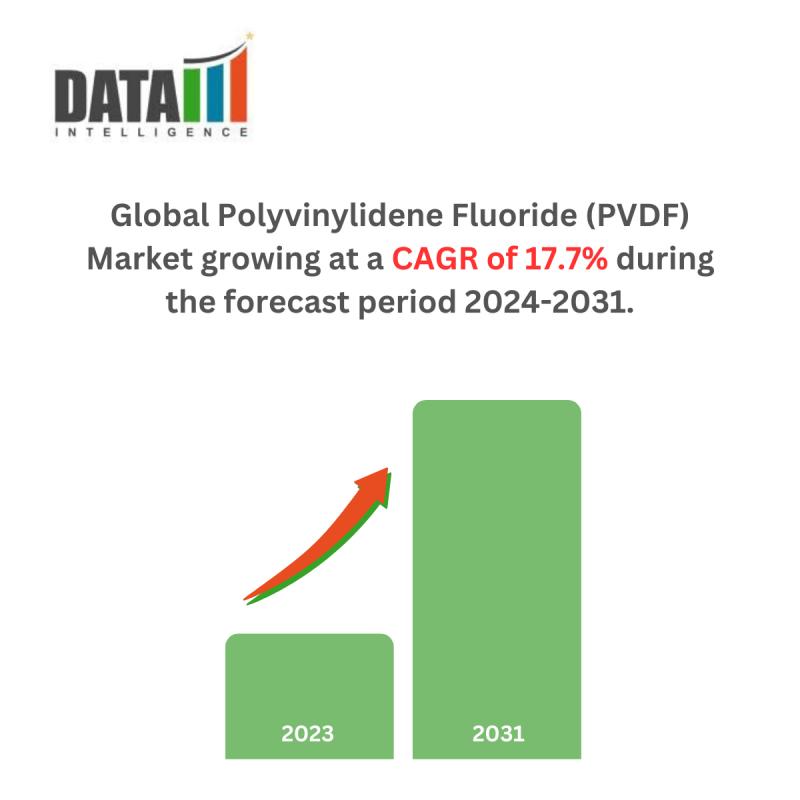 Global Polyvinylidene Fluoride (PVDF) Market reached US$ 0.5 billion in 2022 and is expected to reach US$ 1.2 billion by 2031, growing with a CAGR of 17.7% during the forecast period 2024-2031.DataM Intelligence has published a new research report on "Polyvinylidene Fluoride Pvdf Market Size 2024". The report explores comprehensive and insightful Information about various key factors like Segmentation, CAGR, business revenue competitive positioning of key companies, investigating elements such as product offerings, pricing strategies, financial performance, product portfolios, growth initiatives, and geographical reach. The purpose of this report is to provide a telescopic view of the current market size by value and volume, opportunities, and development status.