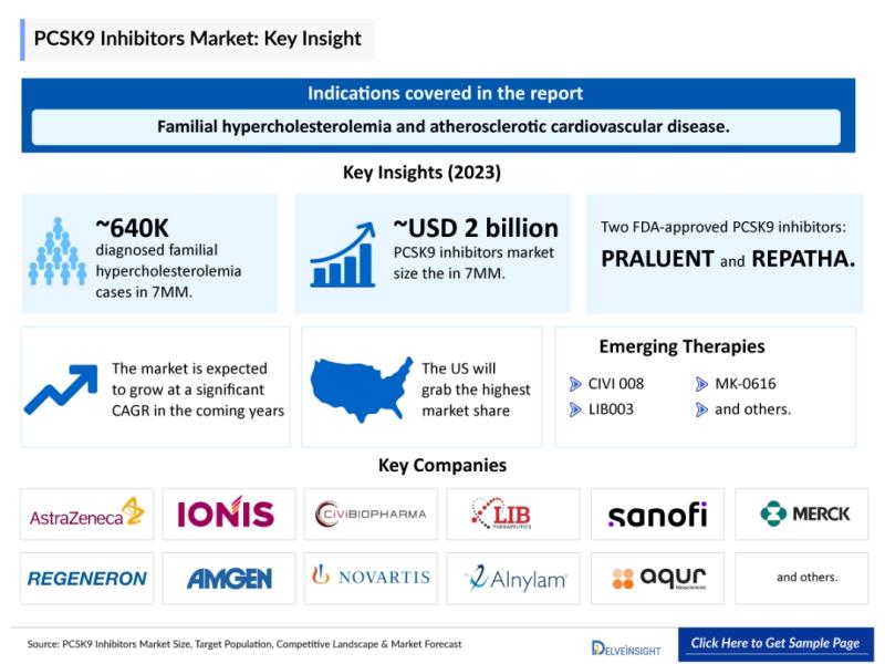 PCSK9 Inhibitors Companies are Sirnaomics, Vaxxinity, Verve Therapeutics, Xinlitai Biotechnology, Novo Nordisk, AstraZeneca, Akeso Biopharma, Amgen, Jiangsu Hengrui Medicine Co., Innovent Biologics, LIB Therapeutics, AstraZeneca and Ionis Pharmaceuticals, CiVi Biopharma, and others