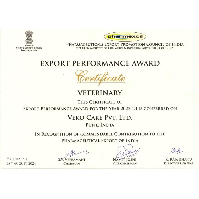 We are proud to announce that Veko Care has won the 'Outstanding export Performance award (Veterinary Medicine)' From Pharmexcil setup by Ministry of commerce, Government of India.Hon'ble Shri. Jitin Prasada, Union minister of state for commerce & industry of India, handed over the award in New Delhi.