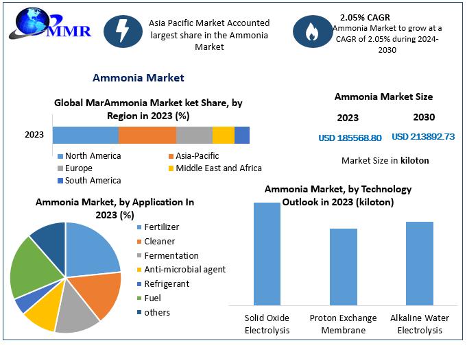 Forecast Increase in Revenue:Ammonia Market was valued at 185568.80 kilotons in 2023, and it is expected to reach 213892.73 kilotons by 2030 with a CAGR of 2.05% during the forecast period.