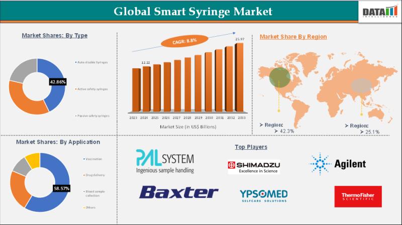 As per DataM intelligence research report "Smart Syringe Market reached US$ 12.22 Billion in 2024 and is expected to reach US$ 25.97 Billion by 2033, growing at a CAGR of 8.8% during the forecast period 2025-2033."