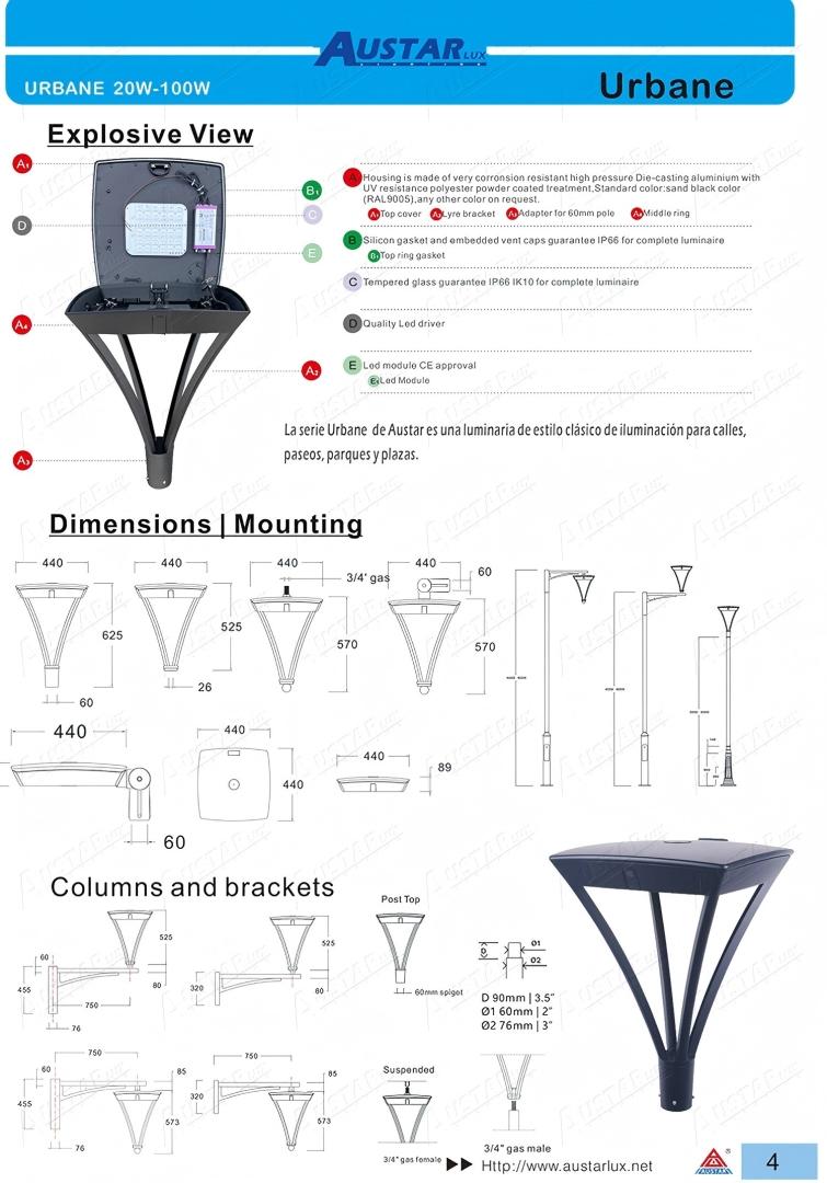 The classic urban lighting [https://www.chinaaustar.com/products/luminarias-urbanas-eclairage-dambiance/] lantern with advanced technology.