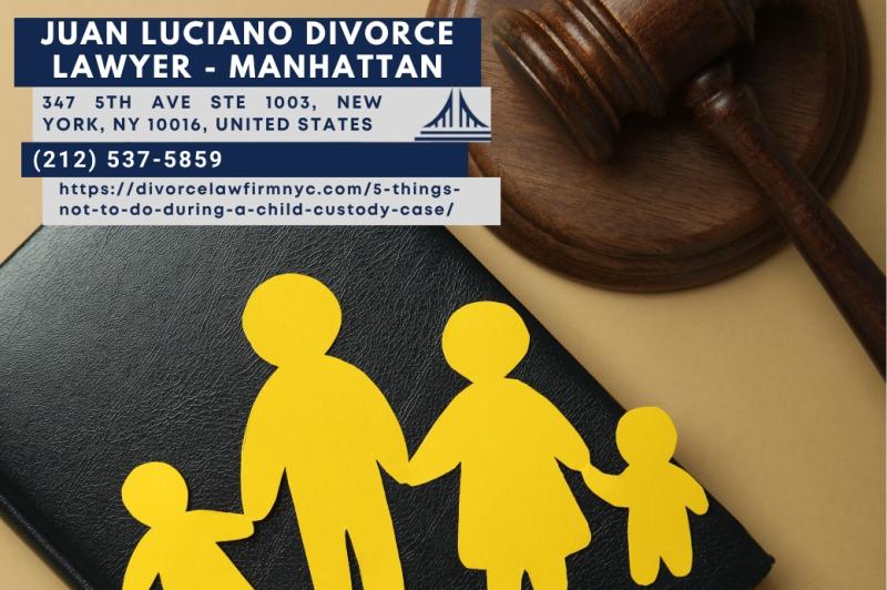 New York, NY - New York child custody lawyer Juan Luciano of Juan Luciano Divorce Lawyer (https://divorcelawfirmnyc.com/5-things-not-to-do-during-a-child-custody-case/), issued practical guidance identifying five actions parents should avoid during custody proceedings, emphasizing conduct that supports the child's best interests and preserves credibility before the court. Drawing from active family law practice in New York City, the guidance explains why cooperation, respectful communication, compliance with temporary orders, prudent social choices, and timely retention…