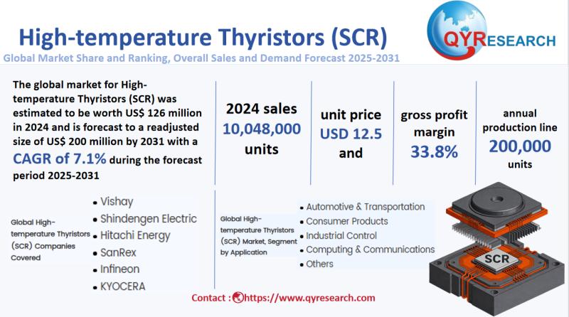 Global leading market research publisher QYResearch published the release of its latest report, "High-temperature Thyristors (SCR) - Global Market Share, Ranking, Sales, and Demand Forecast 2025-2031". This in-depth report provides a complete analysis of the global High-temperature Thyristors (SCR) market, offering critical insights into market size, share, demand, industry development status, and future forecasts. Whether you're a…