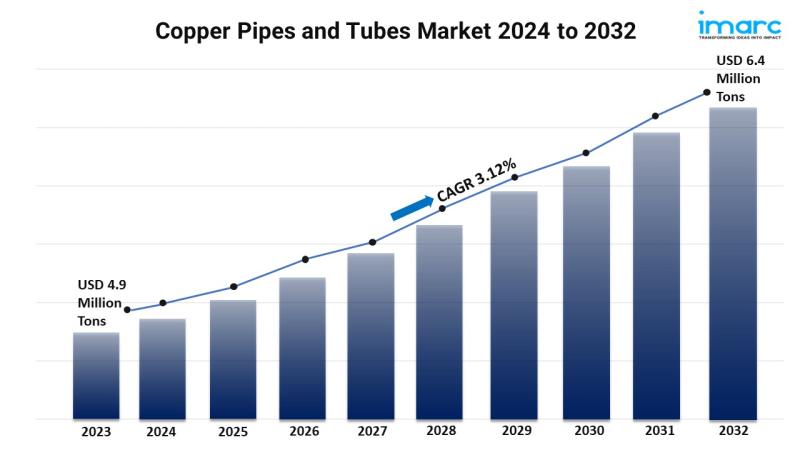 According to the latest report by IMARC Group, titled "Copper Pipes and Tubes Market: Global Industry Trends, Share, Size, Growth, Opportunity and Forecast 2024-2032," offers a comprehensive analysis of the industry, which comprises insights on the copper pipes and tubes market. The report also includes competitor and regional analysis, and contemporary advancements in the market. the global copper pipes and tubes market size reached 4.9 Million Tons in 2023. Looking forward, IMARC Group expects the market to reach 6.4 Million Tons by 2032, exhibiting a growth rate (CAGR) of 3.12% during 2024-2032.