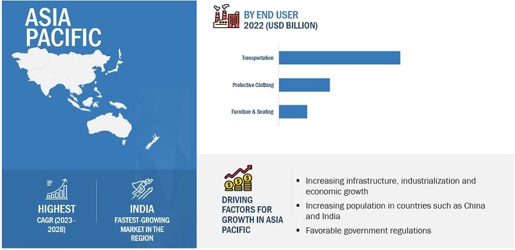 In terms of value, the coated farbics market [https://www.marketsandmarkets.com/Market-Reports/coated-fabric-market-64354822.html?utm_source=abnewswire.com&utm_medium=referral&utm_campaign=coatedfabric] is estimated to grow from USD 23.7 billion in 2022 to USD 29.8 billion by 2028, at a CAGR of 3.9%. The main drivers of the coated farbics market are the increased safety rules in the vehicles, safety regulations in the industries to protect workers from hazard. These drivers influence the growth of the coated fabrics products.