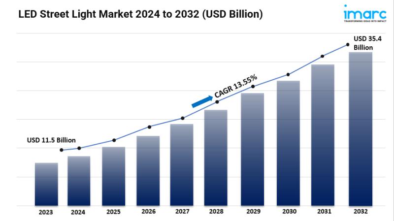 The LED street light Market is expected to reach US$ 35.4 Billion by 2032, exhibiting a growth rate (CAGR) of 13.55% during 2024-2032.Summary: