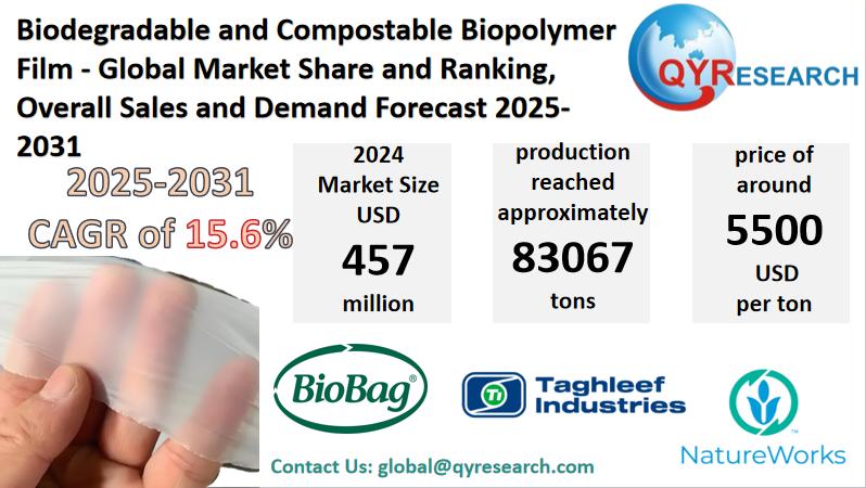 Global leading market research publisher QYResearch published the release of its latest report, "Biodegradable and Compostable Biopolymer Film - Global Market Share, Ranking, Sales, and Demand Forecast 2025-2031". This in-depth report provides a complete analysis of the global Biodegradable and Compostable Biopolymer Film market, offering critical insights into market size, share, demand, industry development status,…