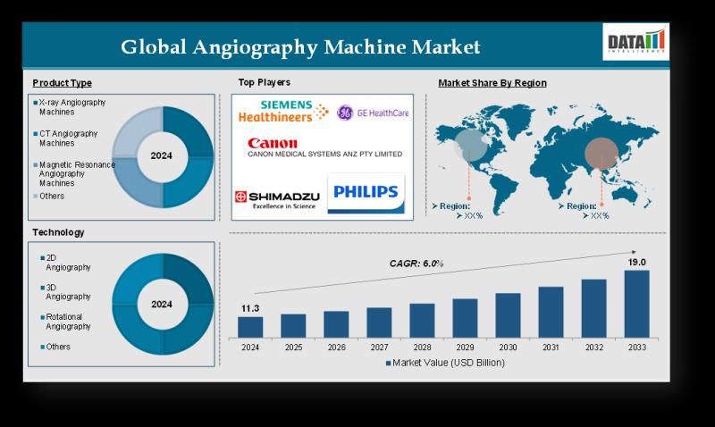 The Global Angiography Machine Market reached US$ 11.3 billion in 2024 and is expected to reach US$ 19.0 billion by 2033, growing at a CAGR of 6.0% during the forecast period 2025-2033.