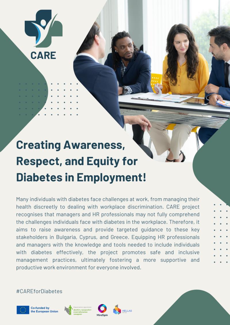 The CARE Project, co-funded under the Erasmus+ Program, is leading the initiative to create more inclusive and supportive workplaces for individuals with diabetes. With diabetes affecting over 422 million people globally, including 61 million in Europe, many individuals living with diabetes are active in the workforce. However, a lack of awareness and tailored support in many workplaces results in reduced productivity and stigmatization.The CARE Project focuses on Bulgaria, Cyprus, and Greece and aims to raise awareness among HR professionals and managers regarding the workplace challenges faced by employees with diabetes. Through a series of key activities, including the development of a practical Guidebook and round-table discussions, the project will help create safer, more equitable working environments.